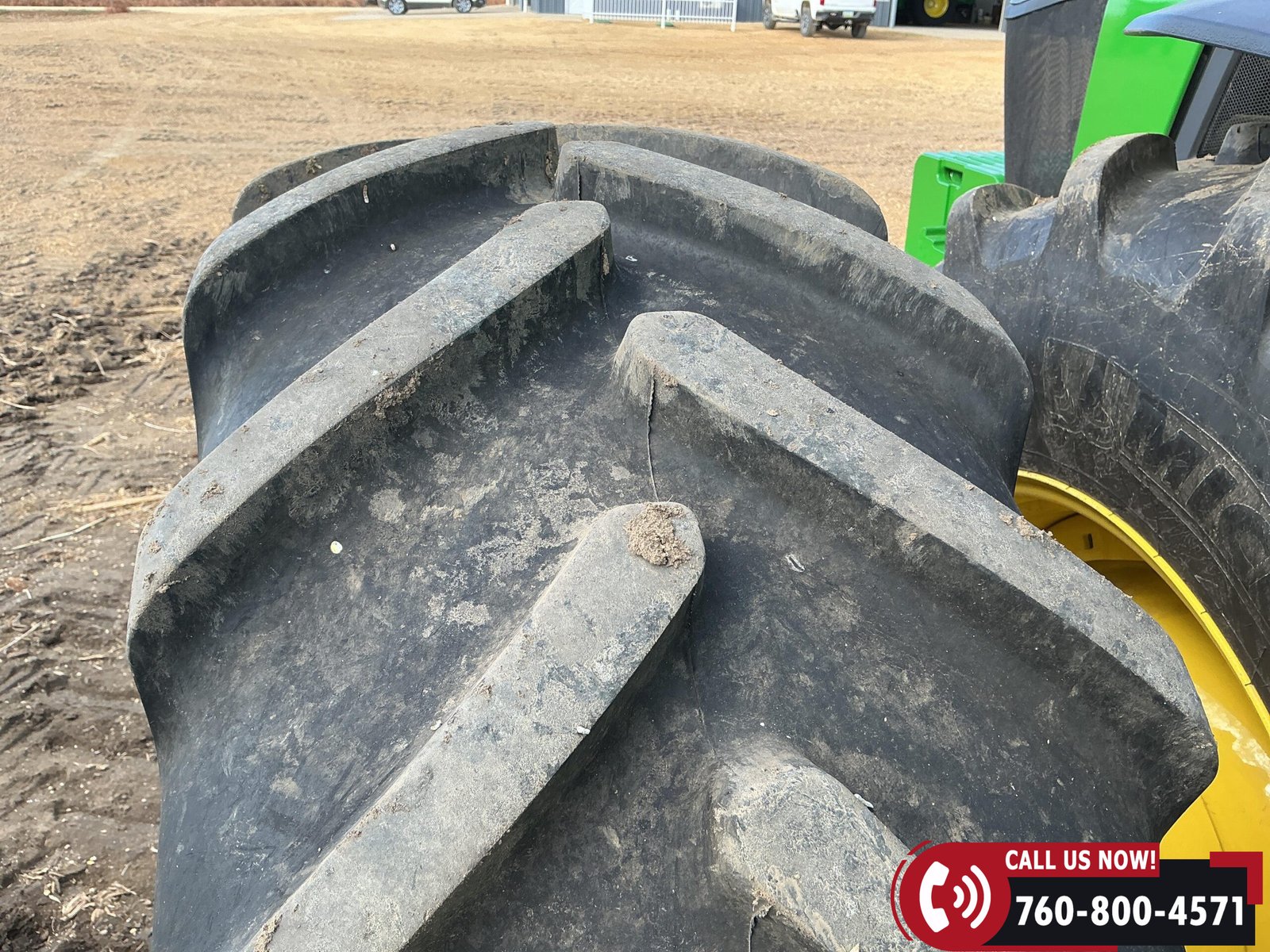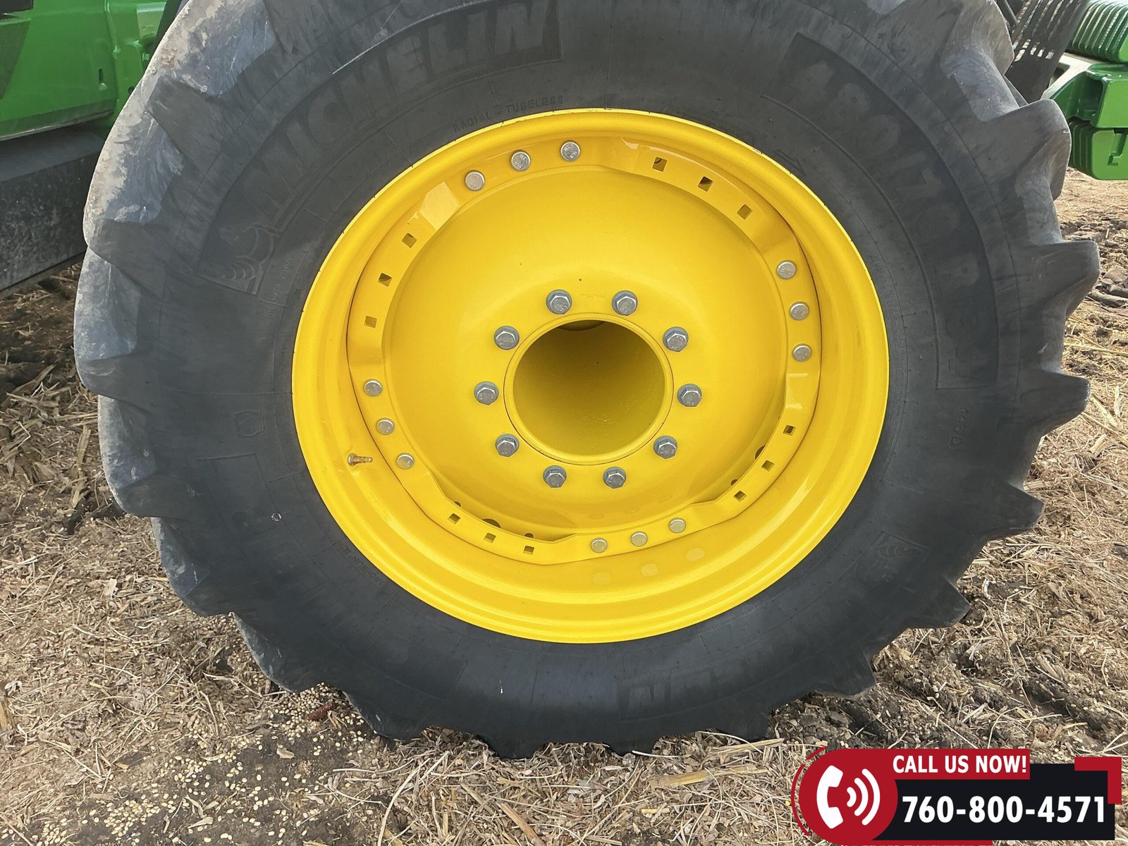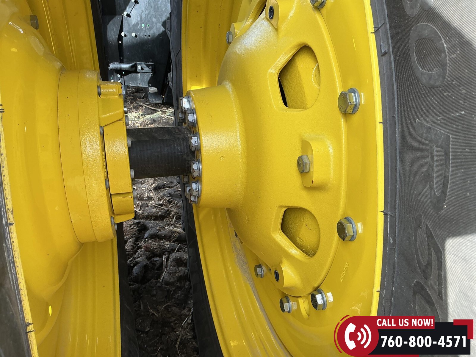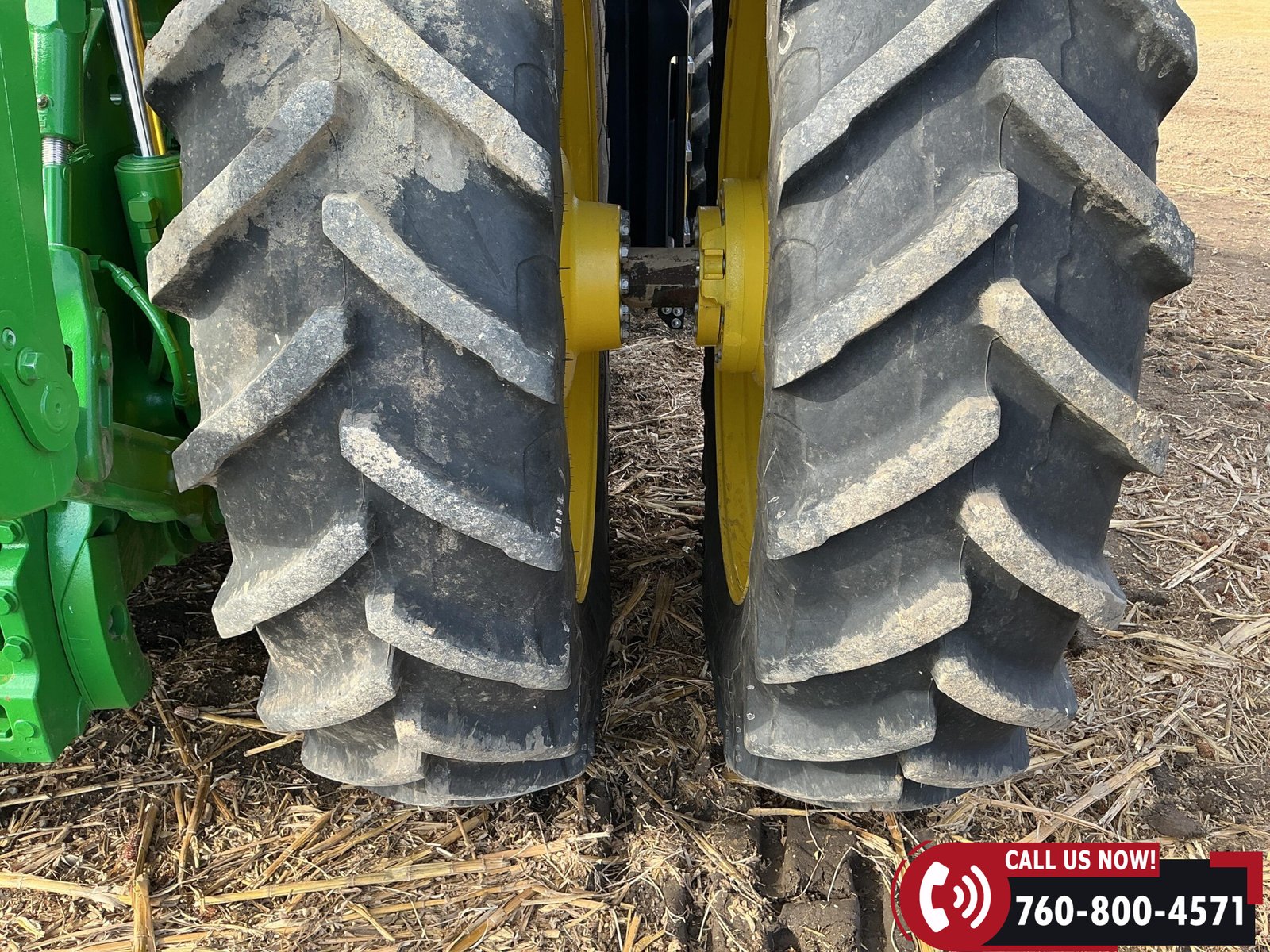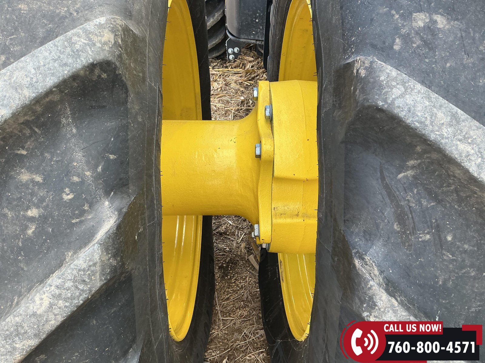Rides on 480/70R34 front tires with duals and 480/80R50 rear tires with duals. Rear wheels include (4) outer 205 kg (452 lb) weights and (2) inner 625 kg (1,377 lb) weights, totaling 4,562 lbs of rear wheel weight.