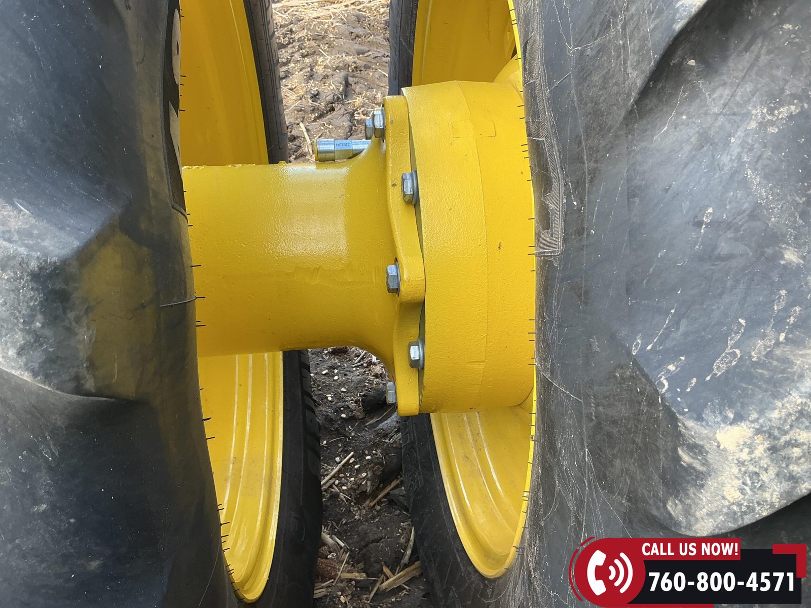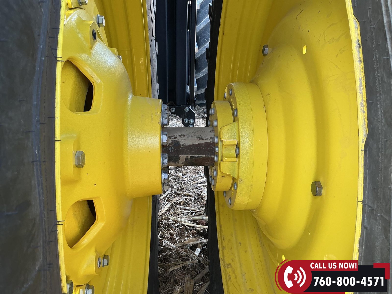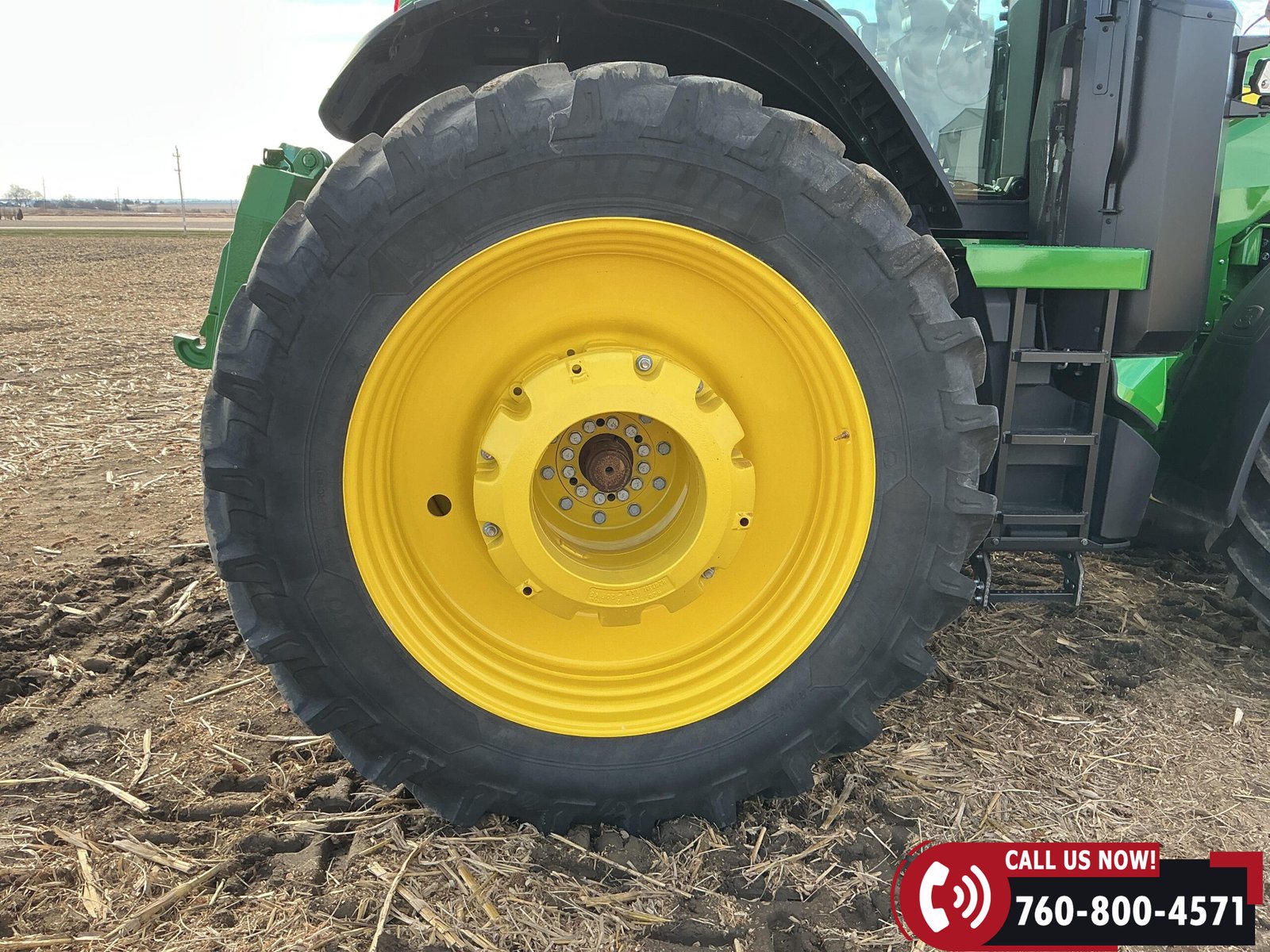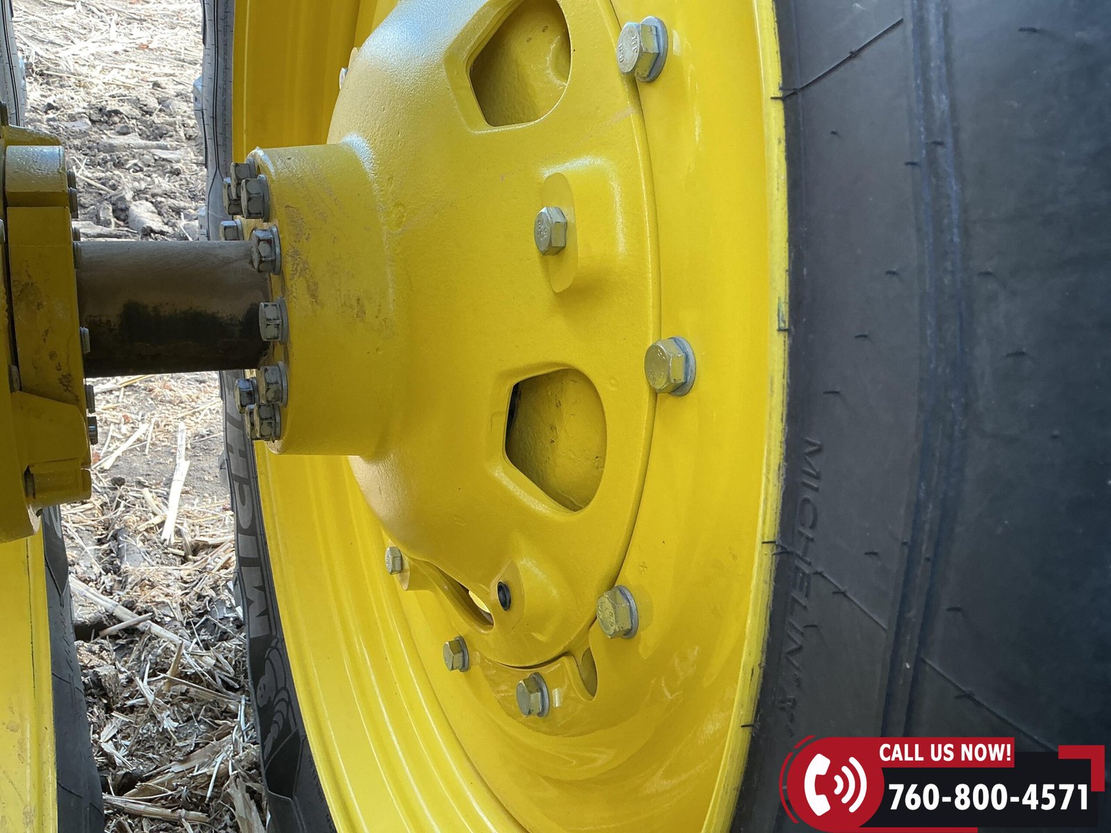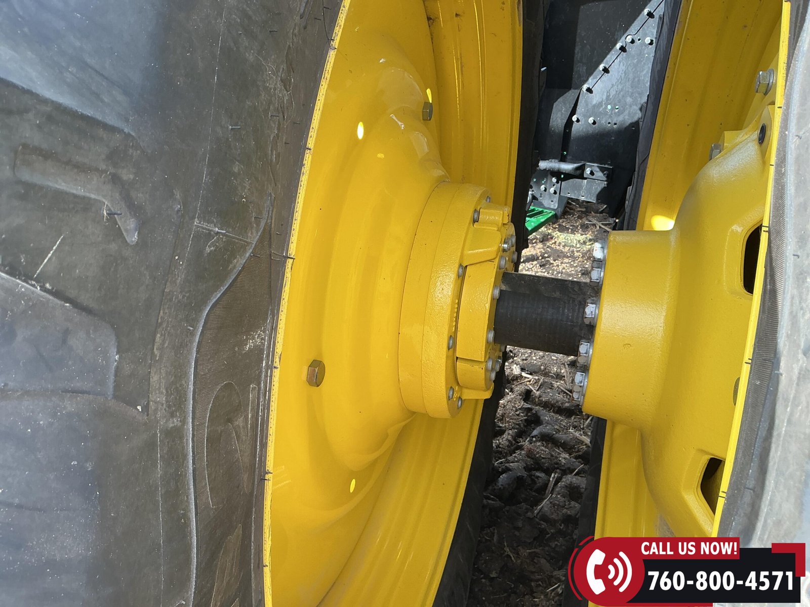 Rides on 480/70R34 front tires with duals and 480/80R50 rear tires with duals. Rear wheels include (4) outer 205 kg (452 lb) weights and (2) inner 625 kg (1,377 lb) weights, totaling 4,562 lbs of rear wheel weight.