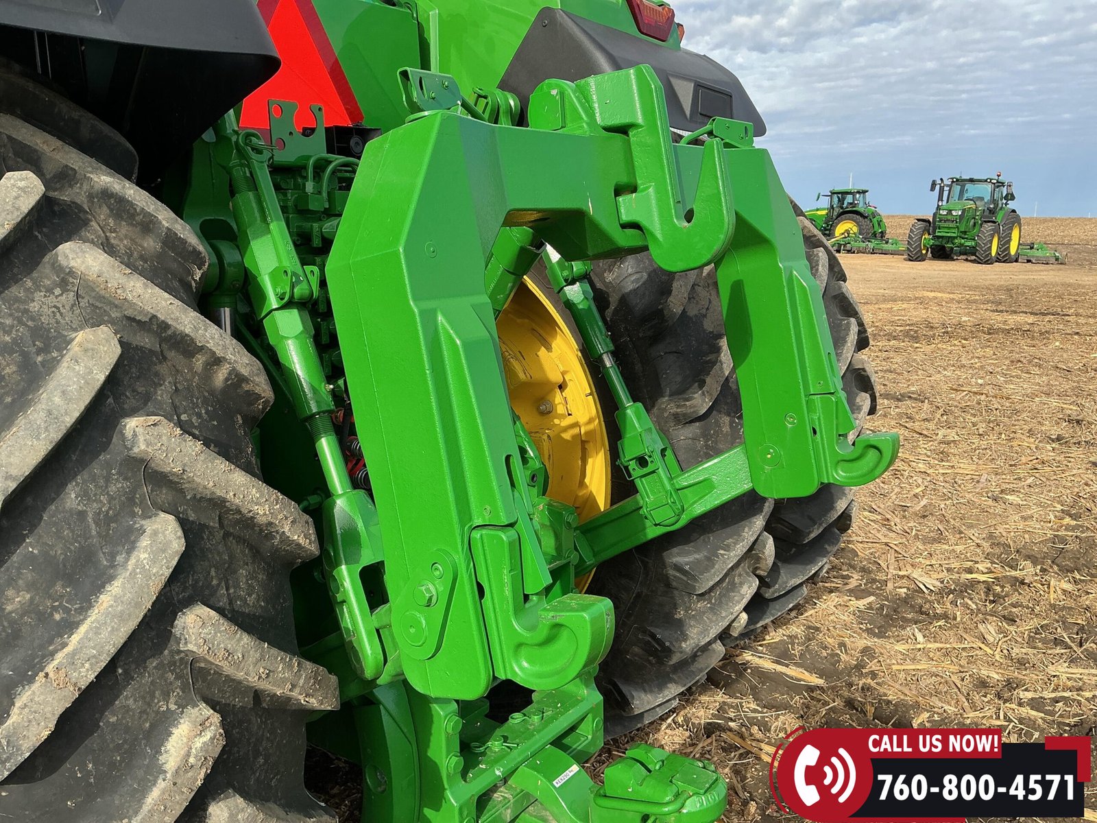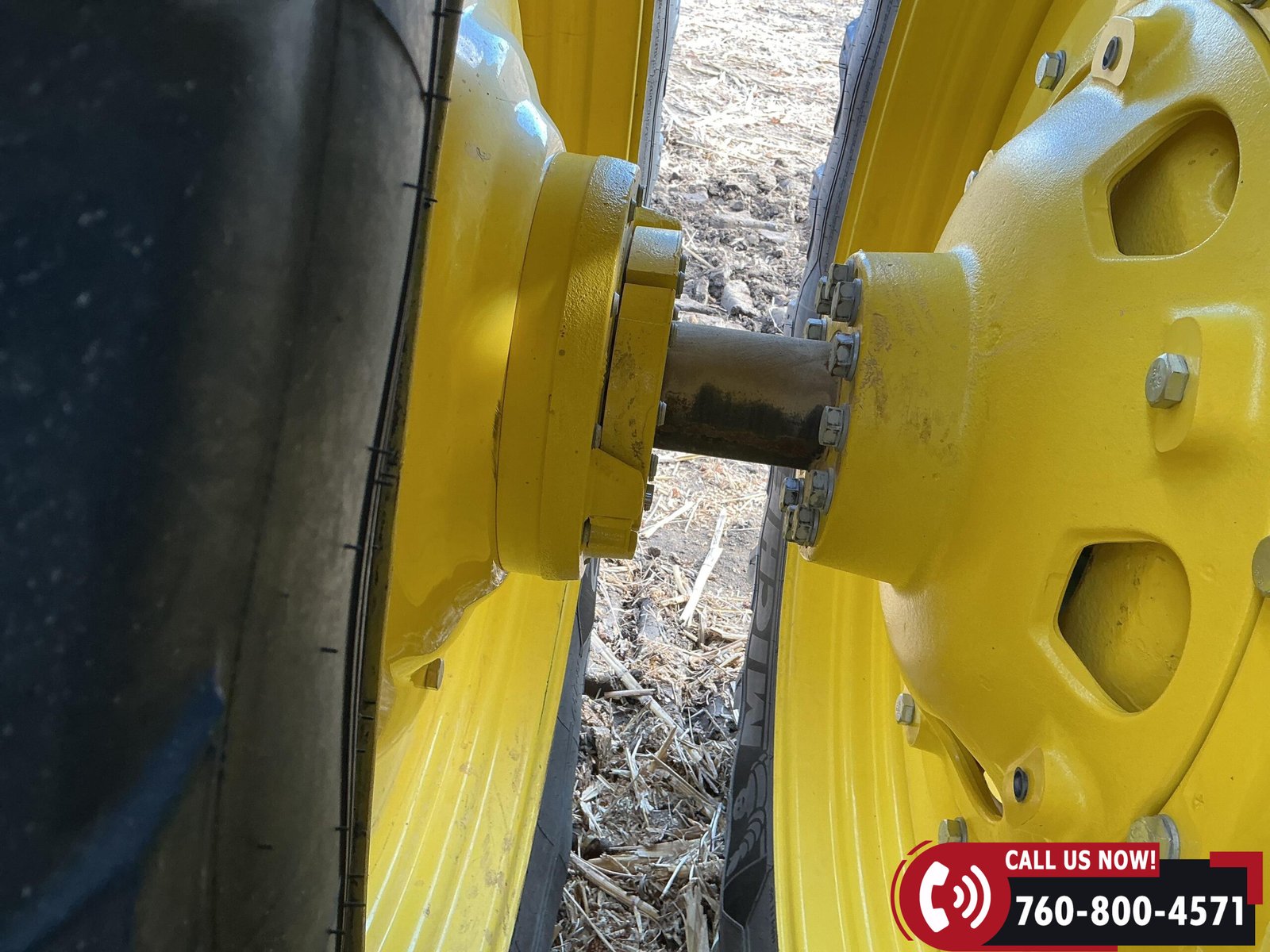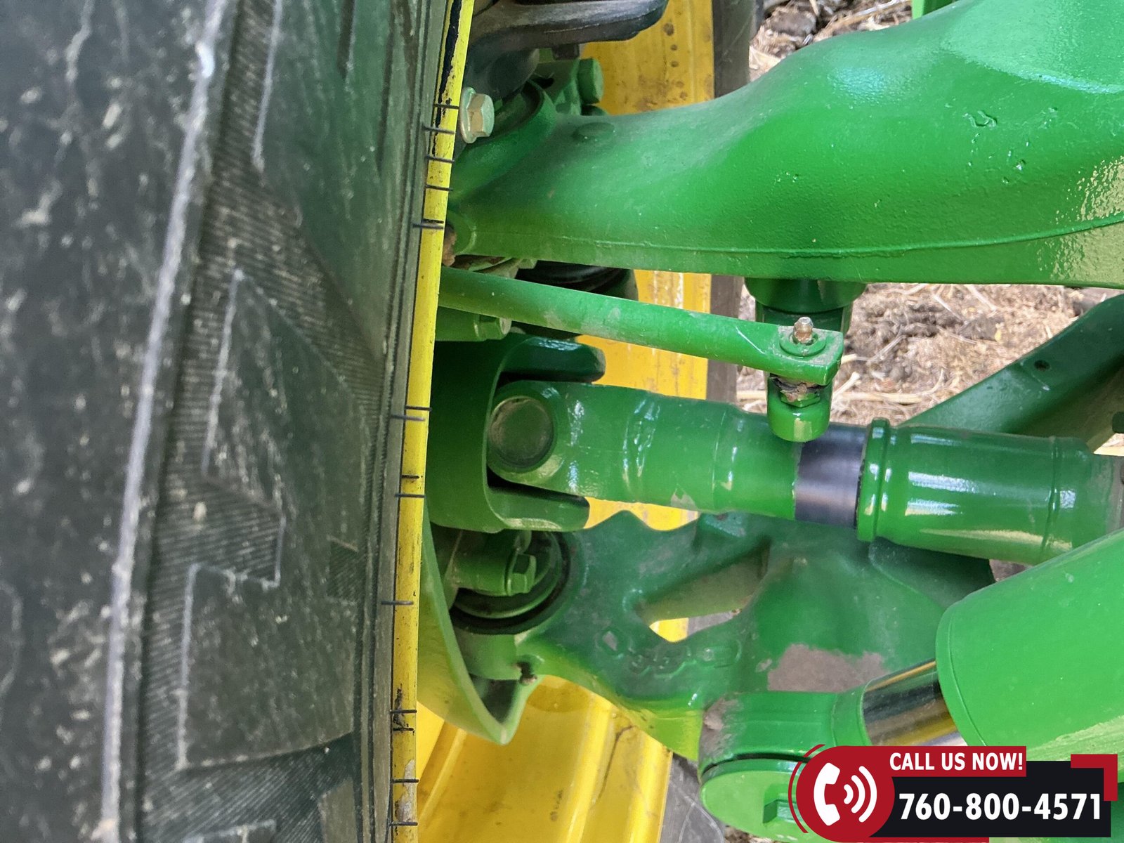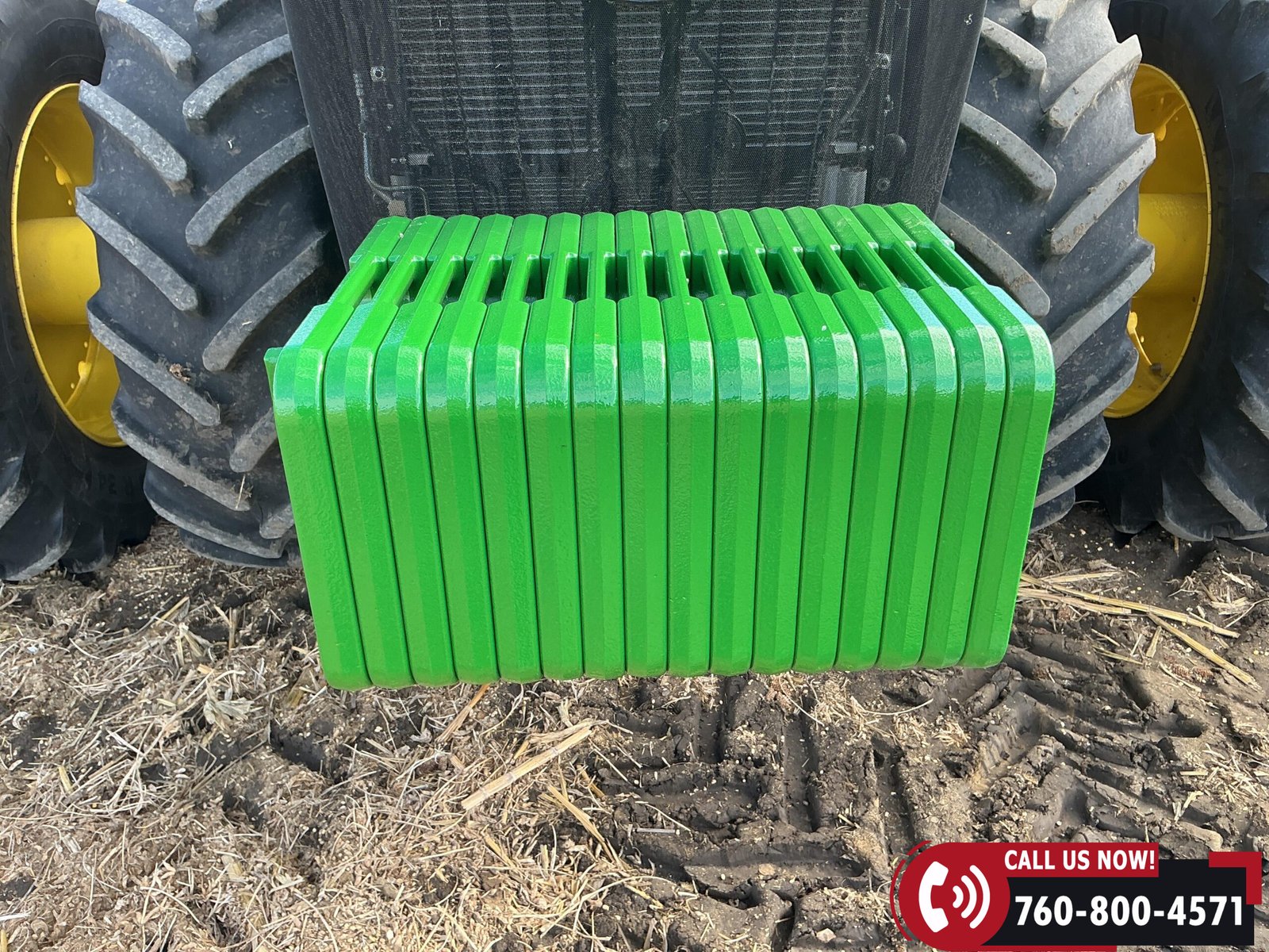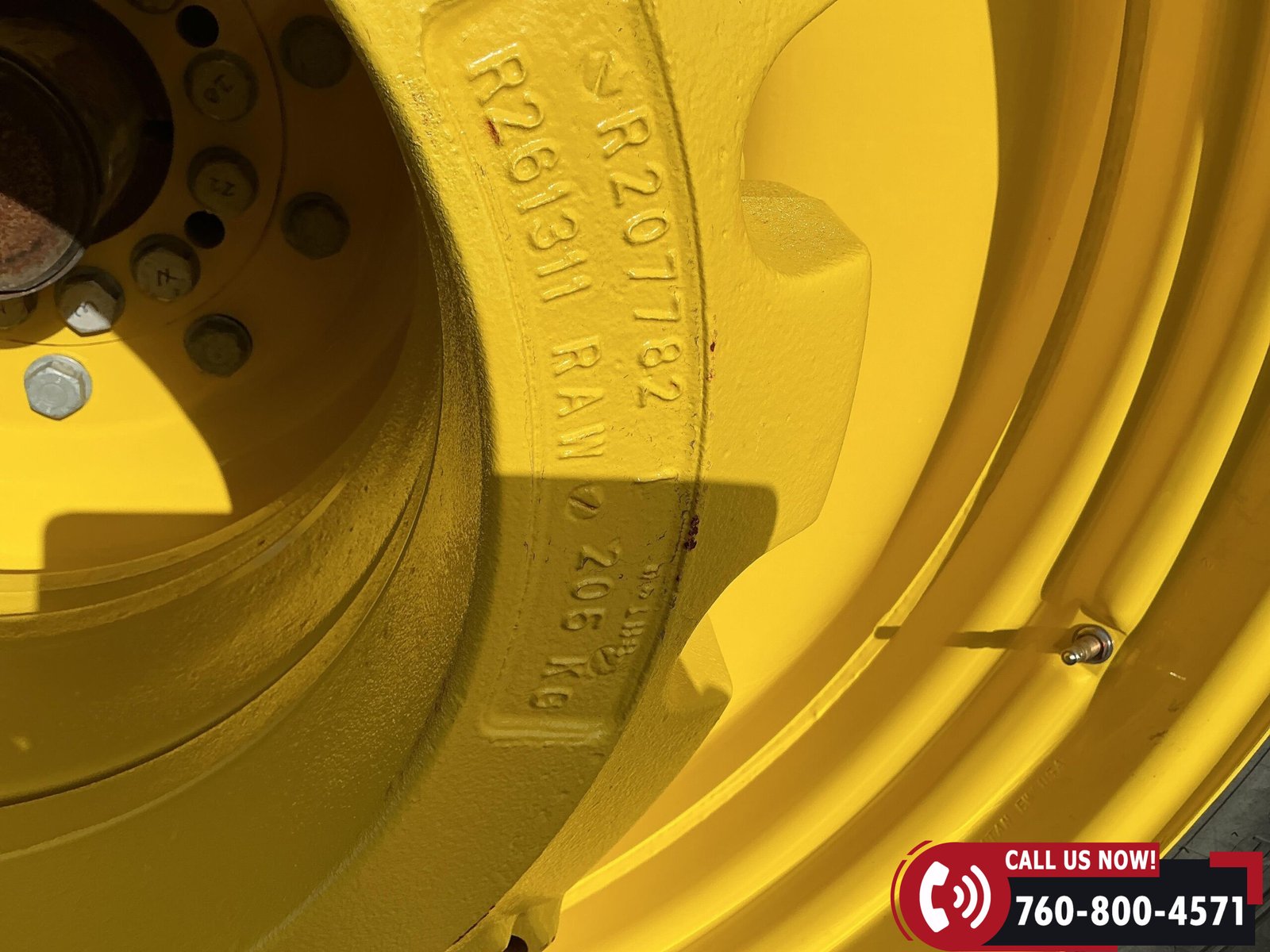 Rides on 480/70R34 front tires with duals and 480/80R50 rear tires with duals. Rear wheels include (4) outer 205 kg (452 lb) weights and (2) inner 625 kg (1,377 lb) weights, totaling 4,562 lbs of rear wheel weight.
