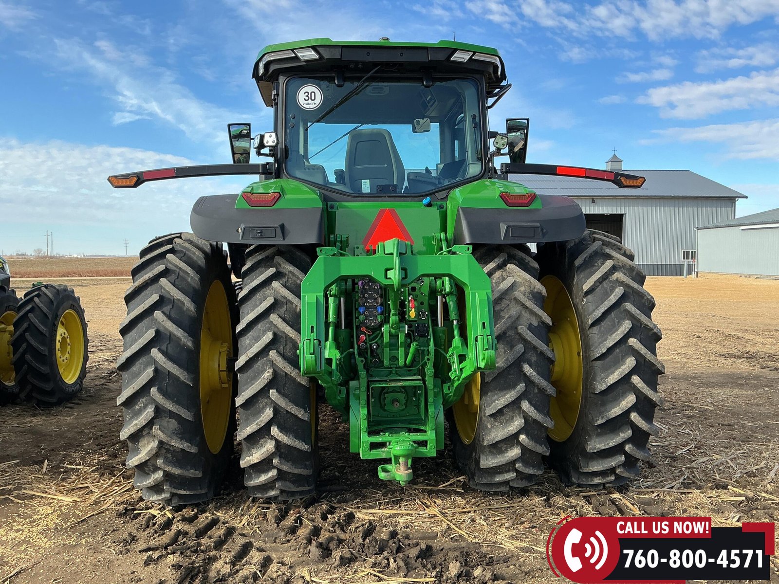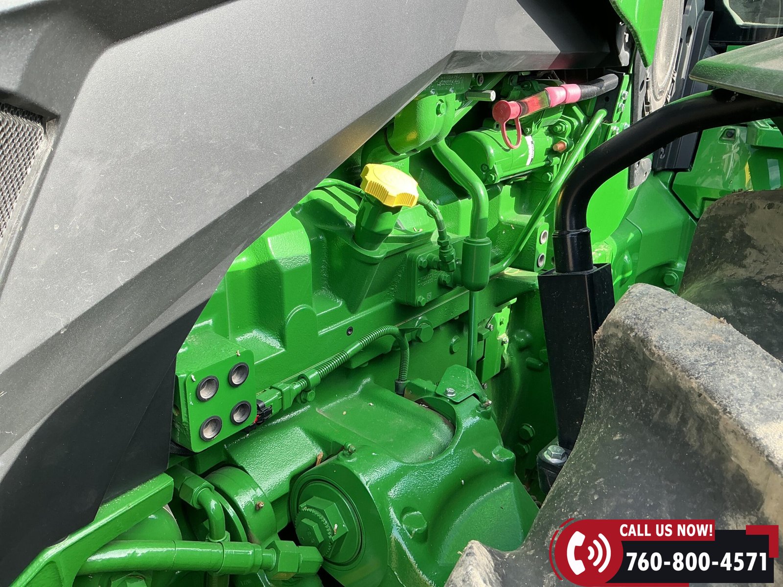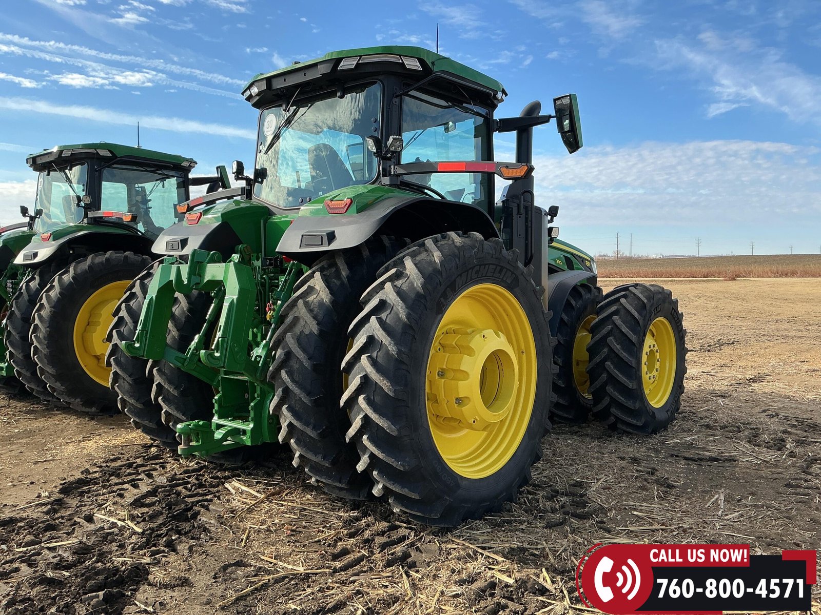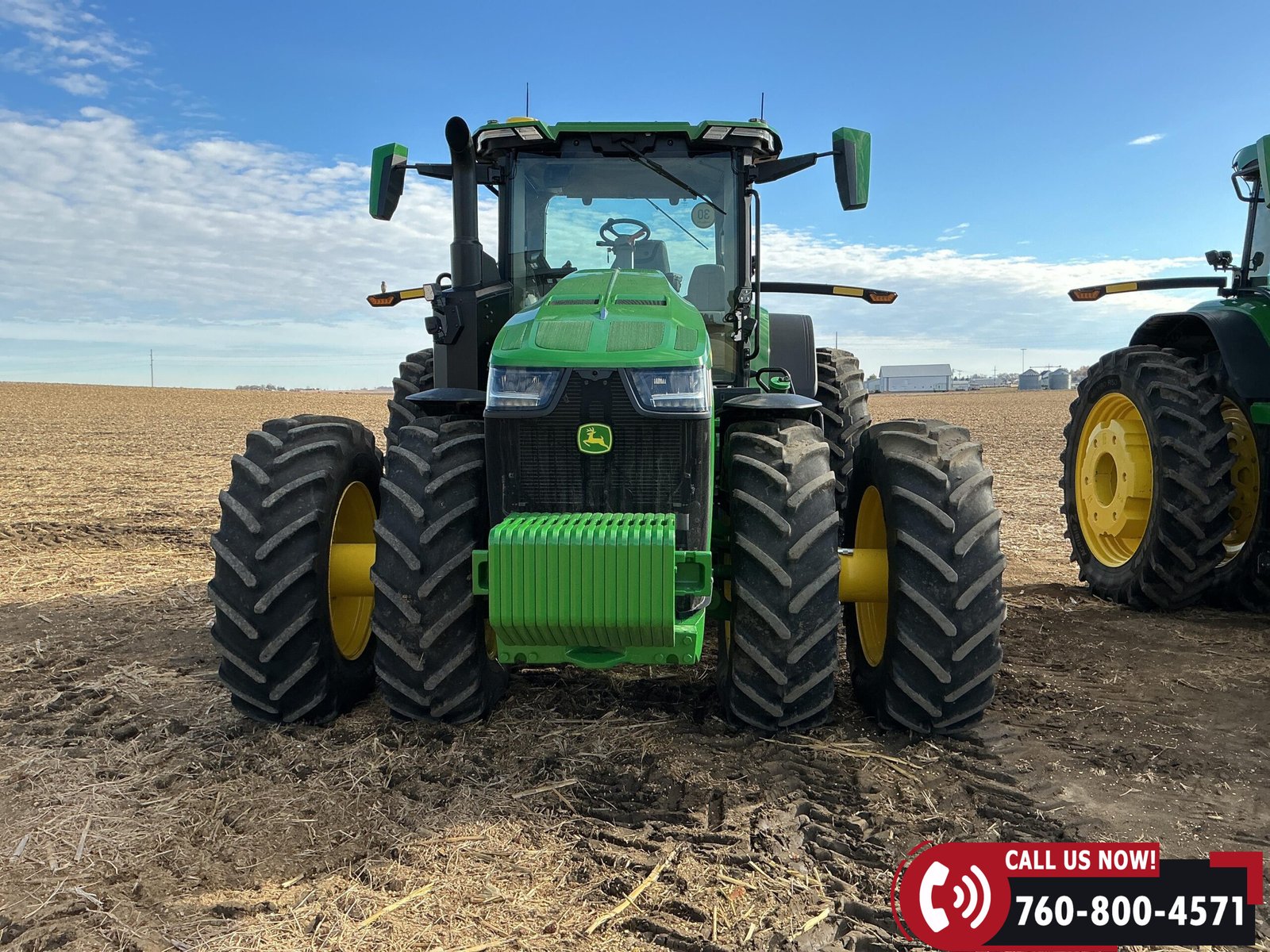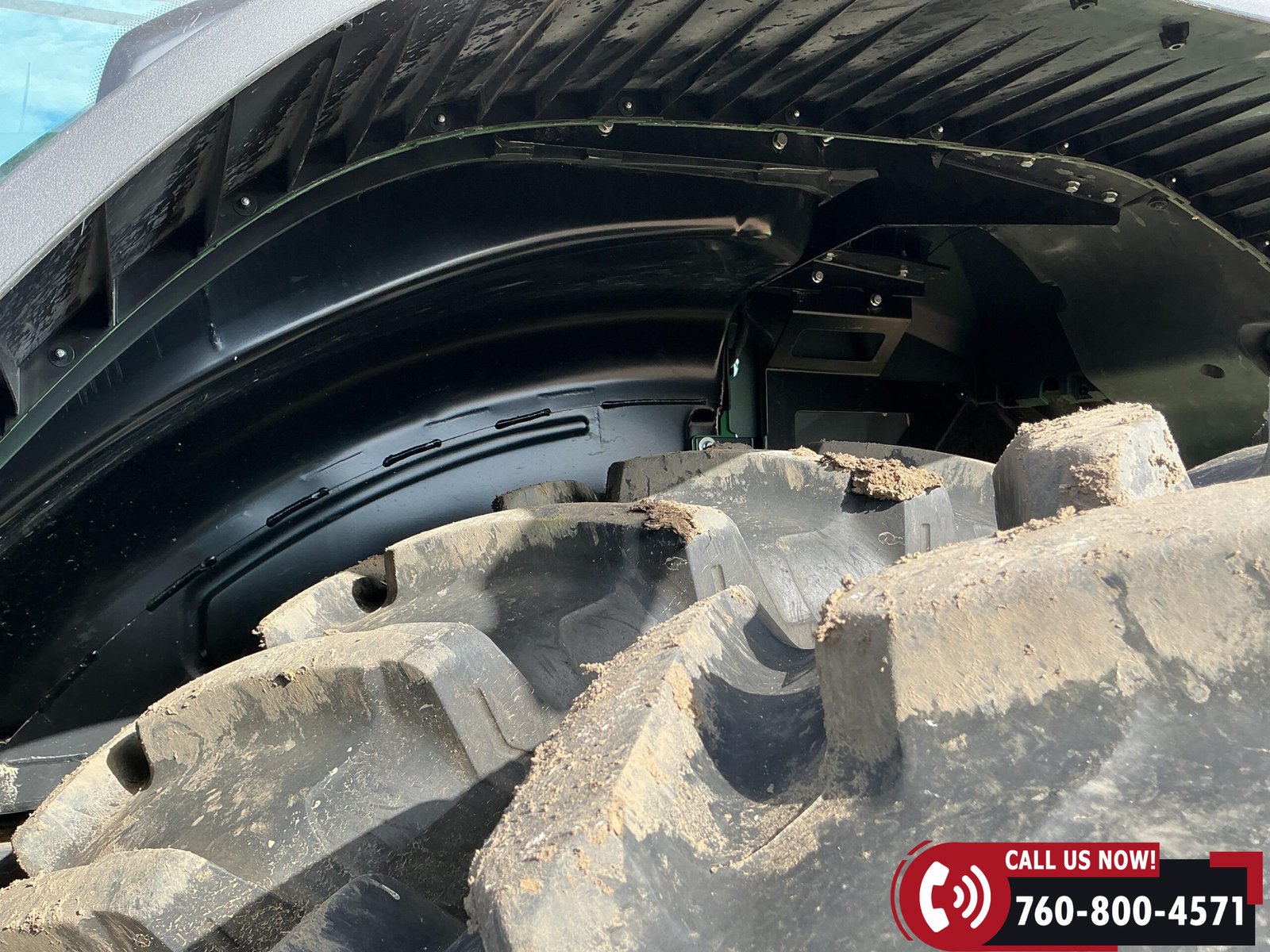 Rides on 480/70R34 front tires with duals and 480/80R50 rear tires with duals. Rear wheels include (4) outer 205 kg (452 lb) weights and (2) inner 625 kg (1,377 lb) weights, totaling 4,562 lbs of rear wheel weight.