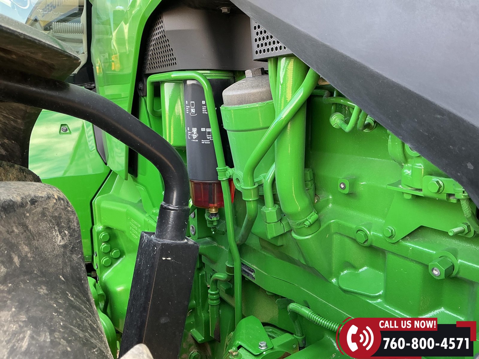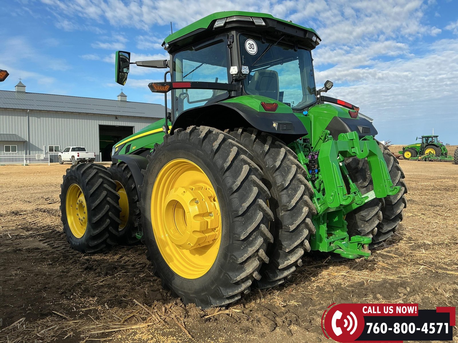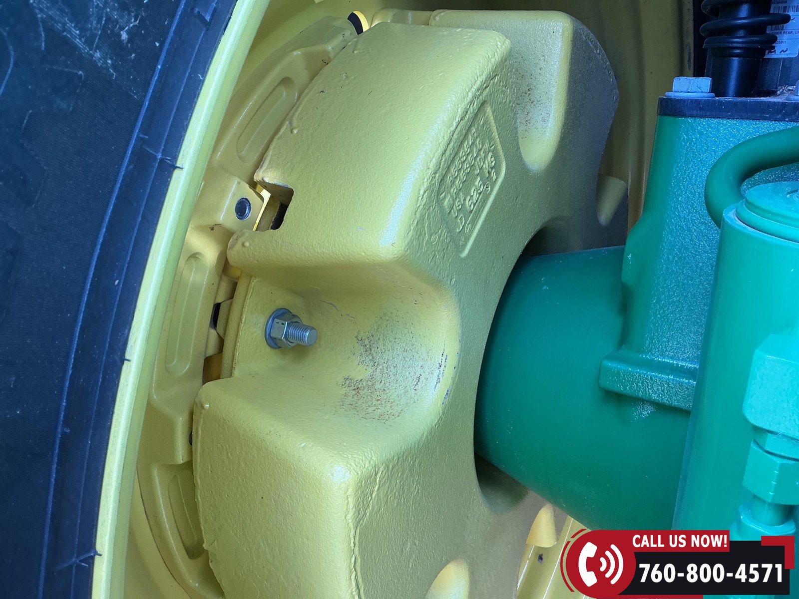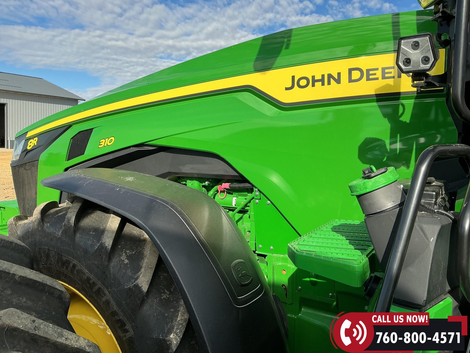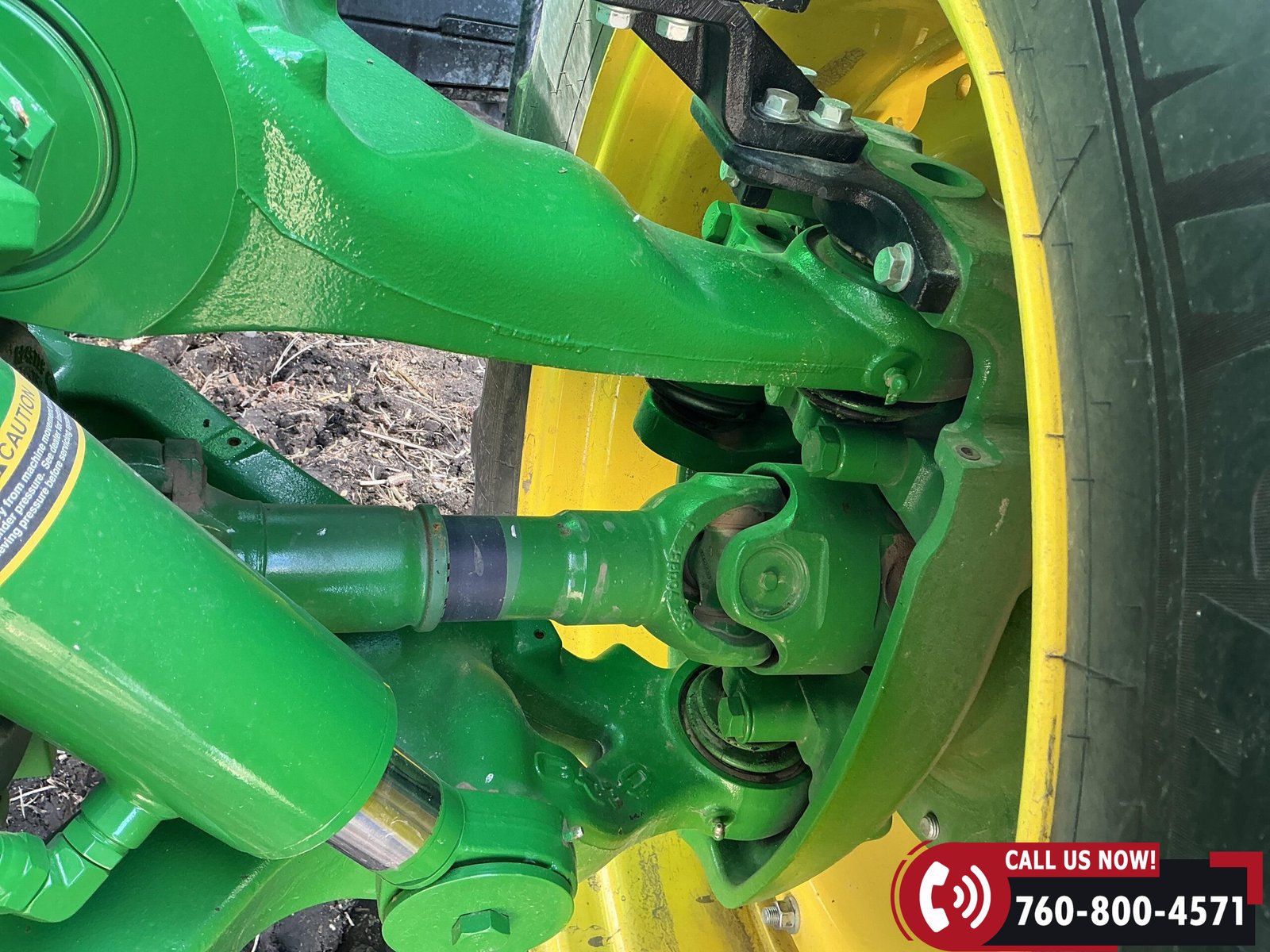 Rides on 480/70R34 front tires with duals and 480/80R50 rear tires with duals. Rear wheels include (4) outer 205 kg (452 lb) weights and (2) inner 625 kg (1,377 lb) weights, totaling 4,562 lbs of rear wheel weight.