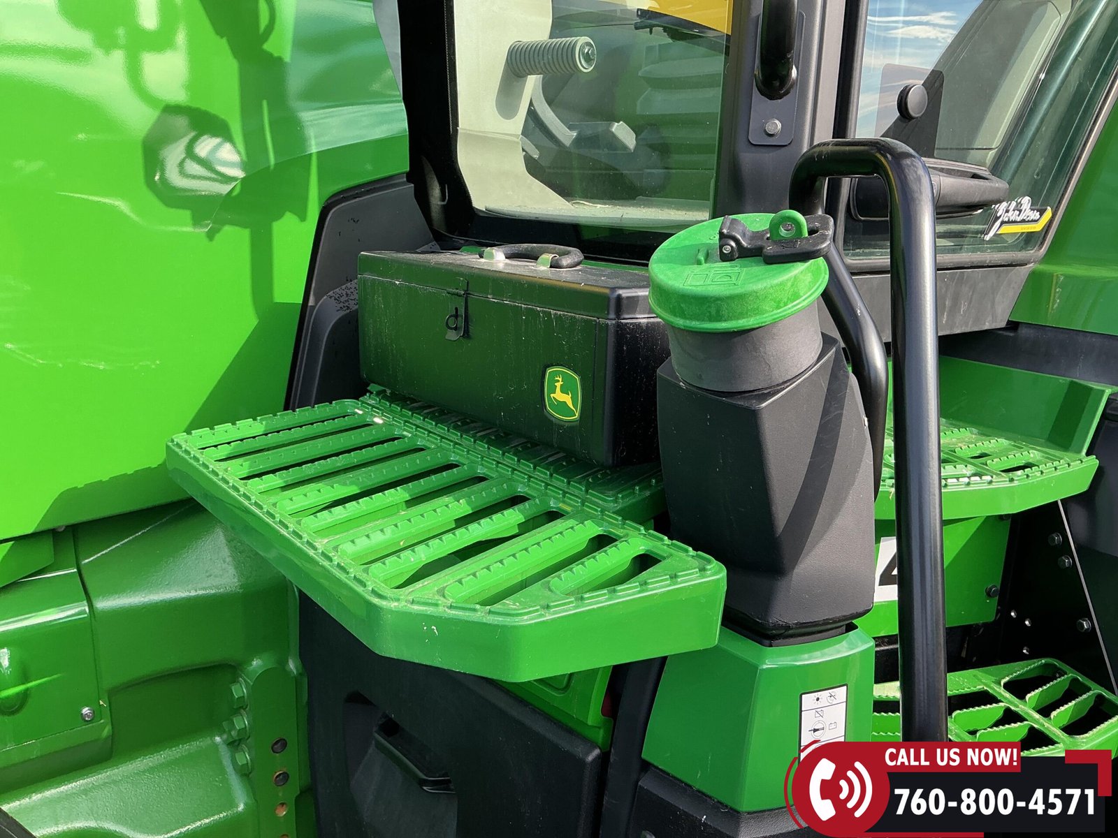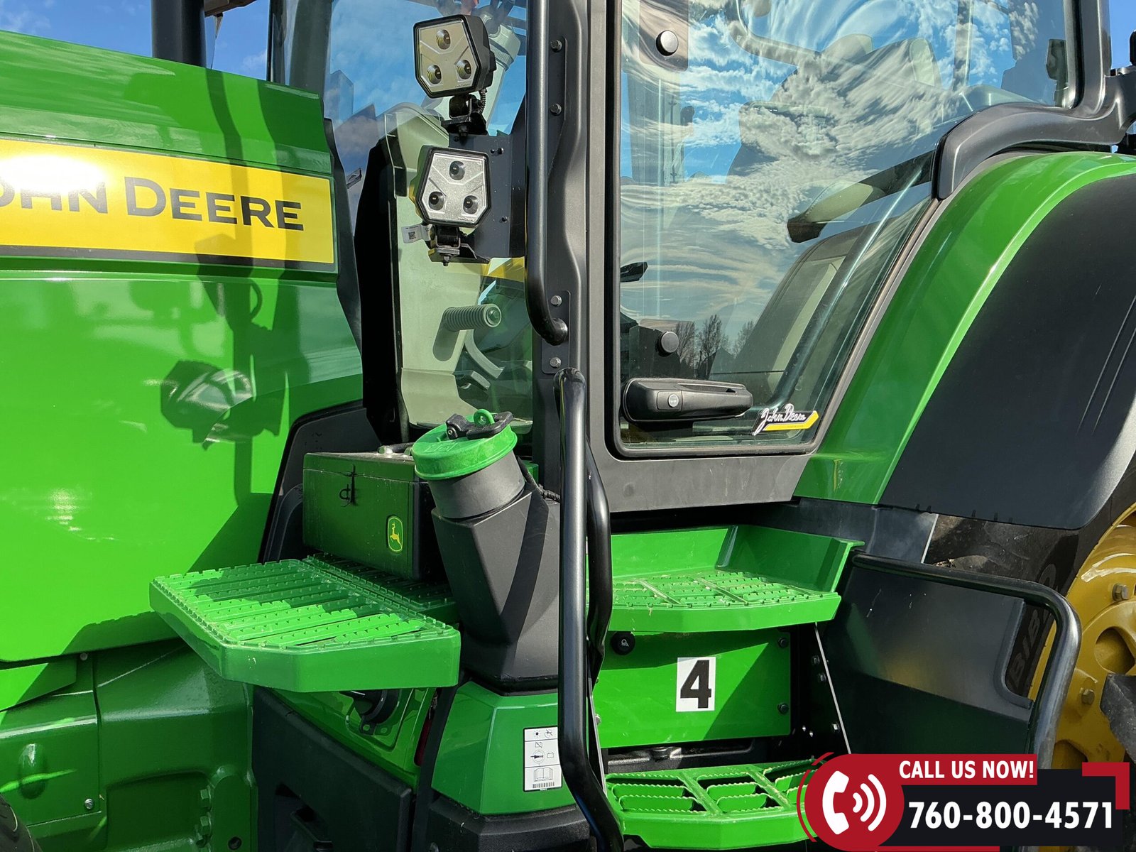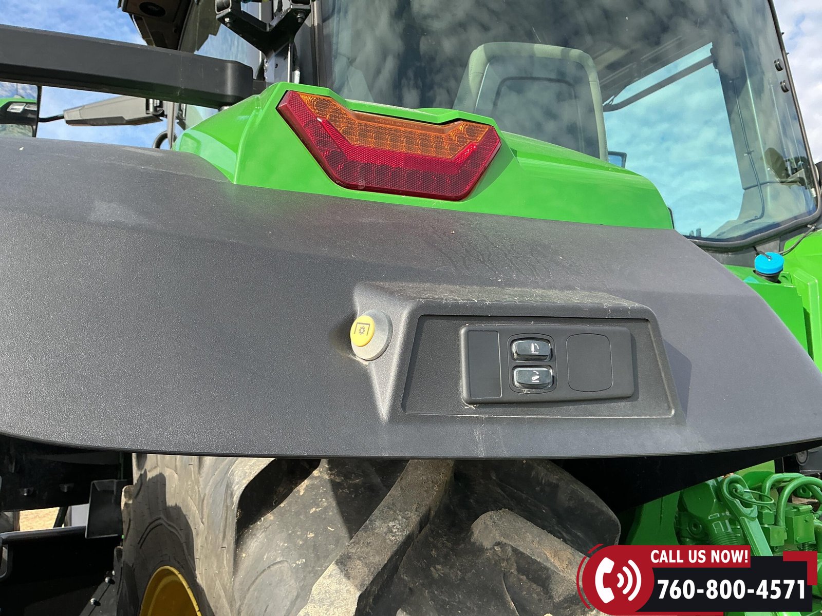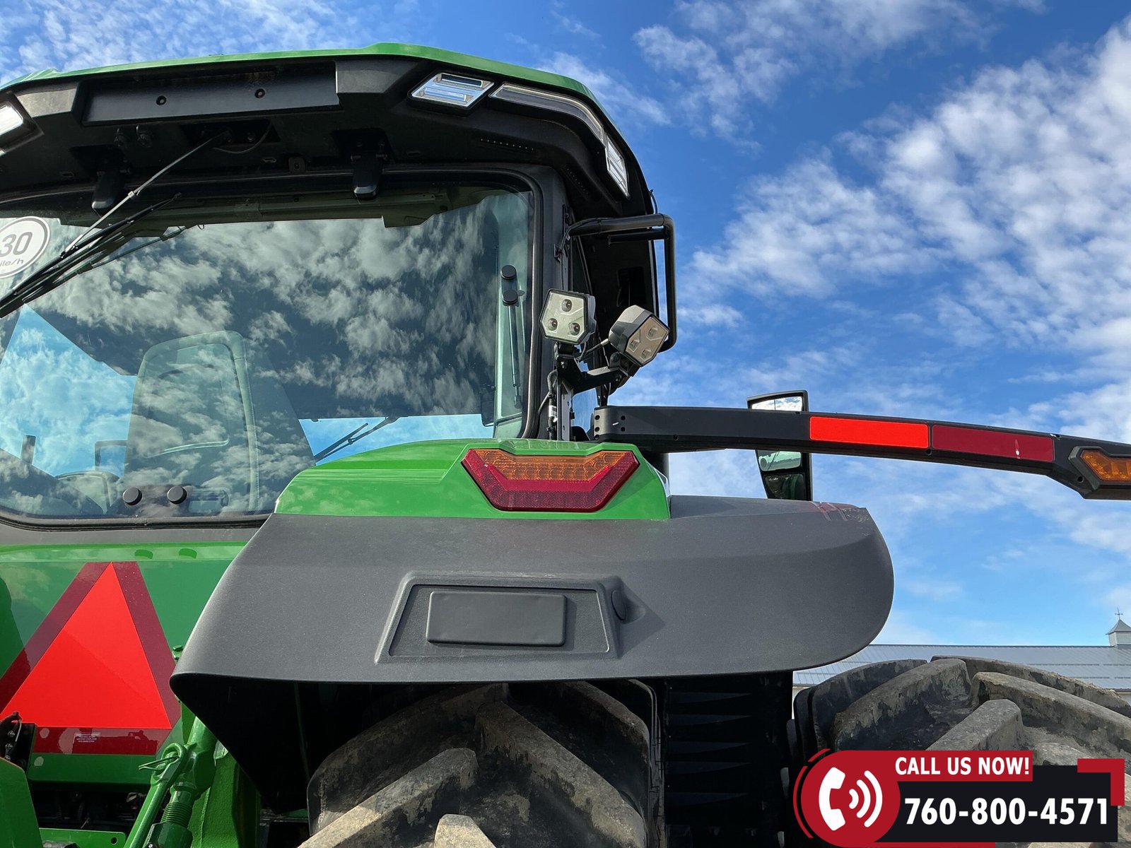 Features include six hydraulic remotes with return ports, large 1000 PTO, quick hitch, rear fender PTO and 3-point hitch controls, and a drawbar with hammer strap and pin. Tractor is equipped with (16) 43 kg (95 lb) front suitcase weights.
