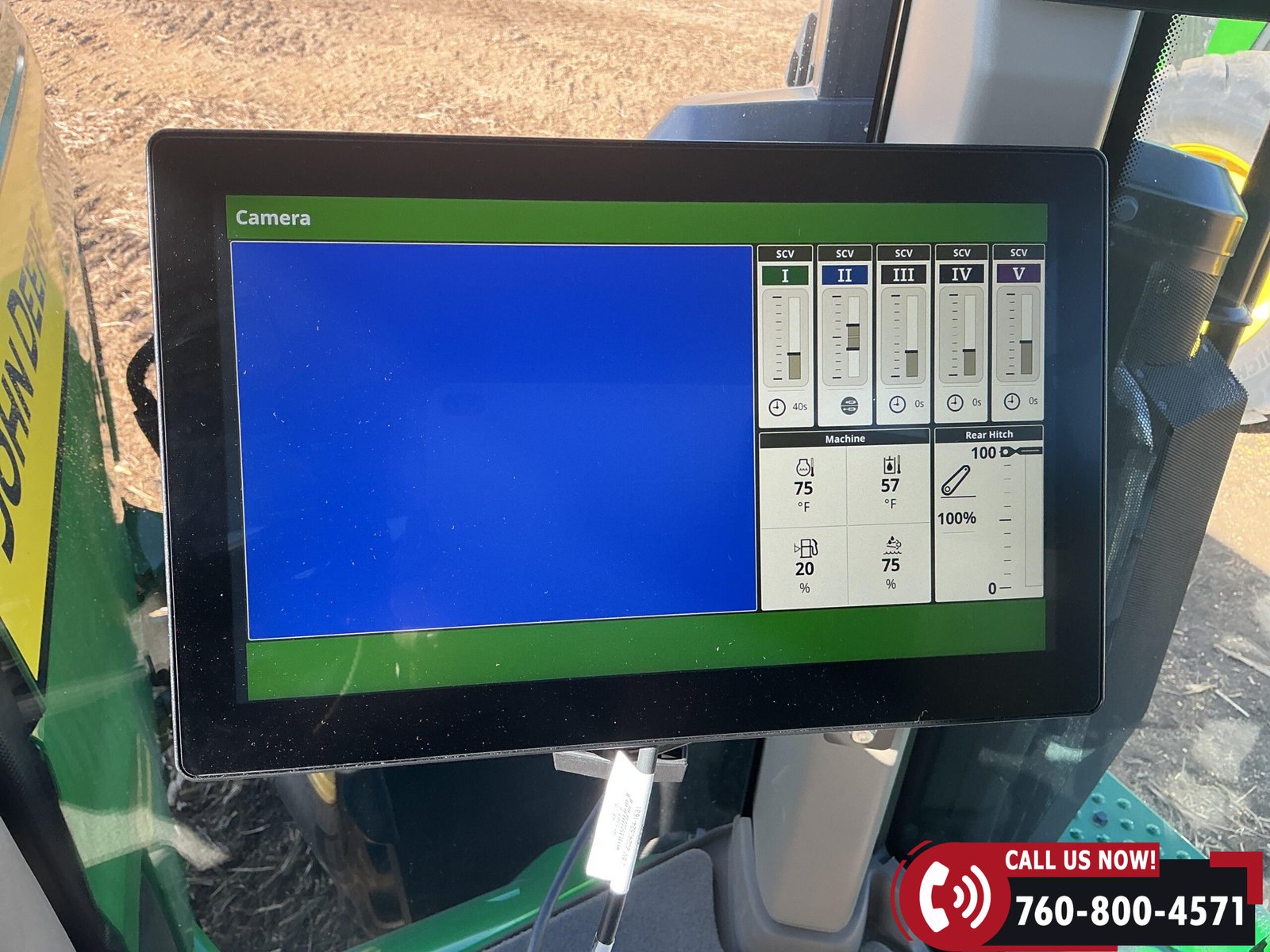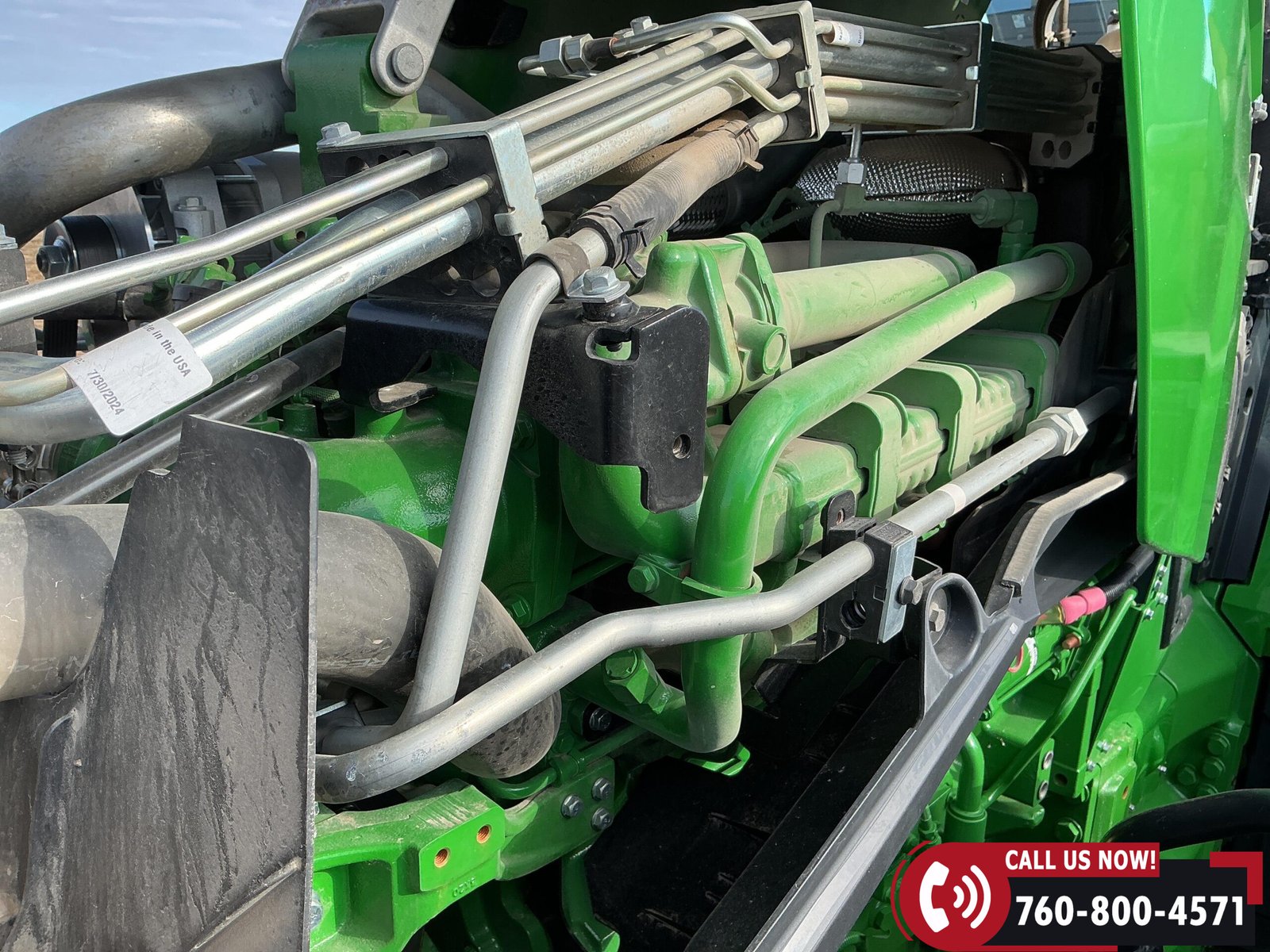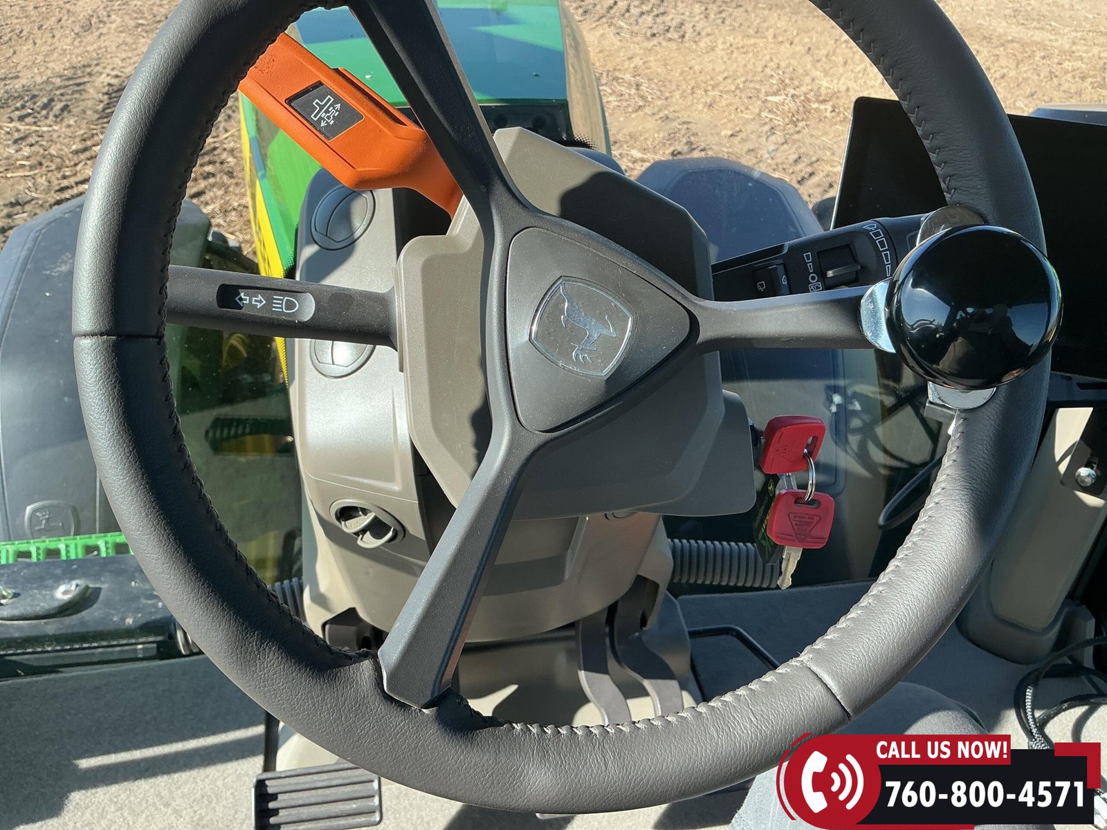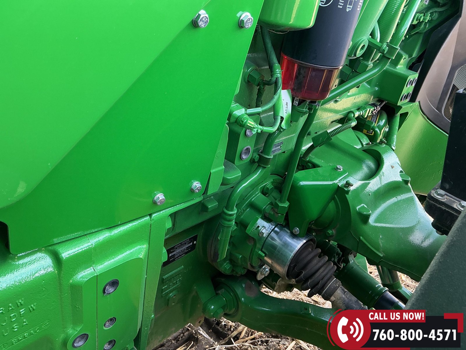 Features include six hydraulic remotes with return ports, large 1000 PTO, quick hitch, rear fender PTO and 3-point hitch controls, and a drawbar with hammer strap and pin. Tractor is equipped with (16) 43 kg (95 lb) front suitcase weights.