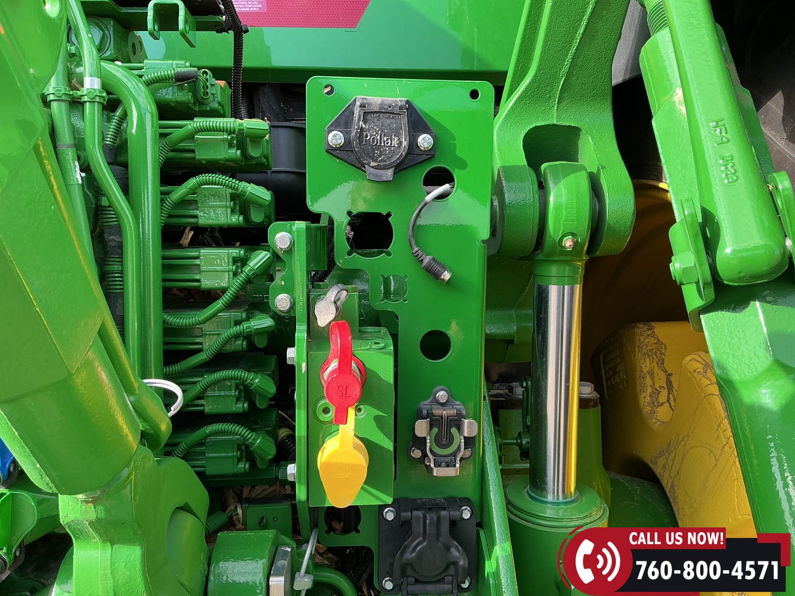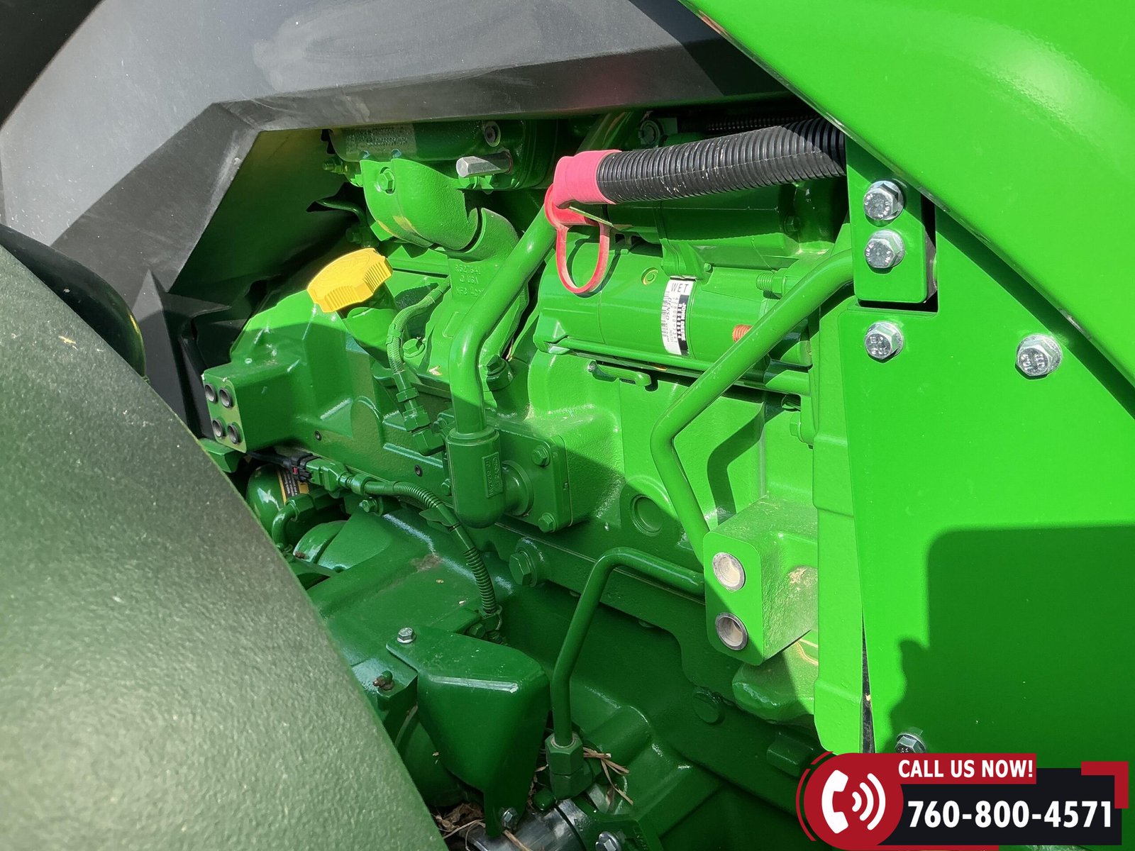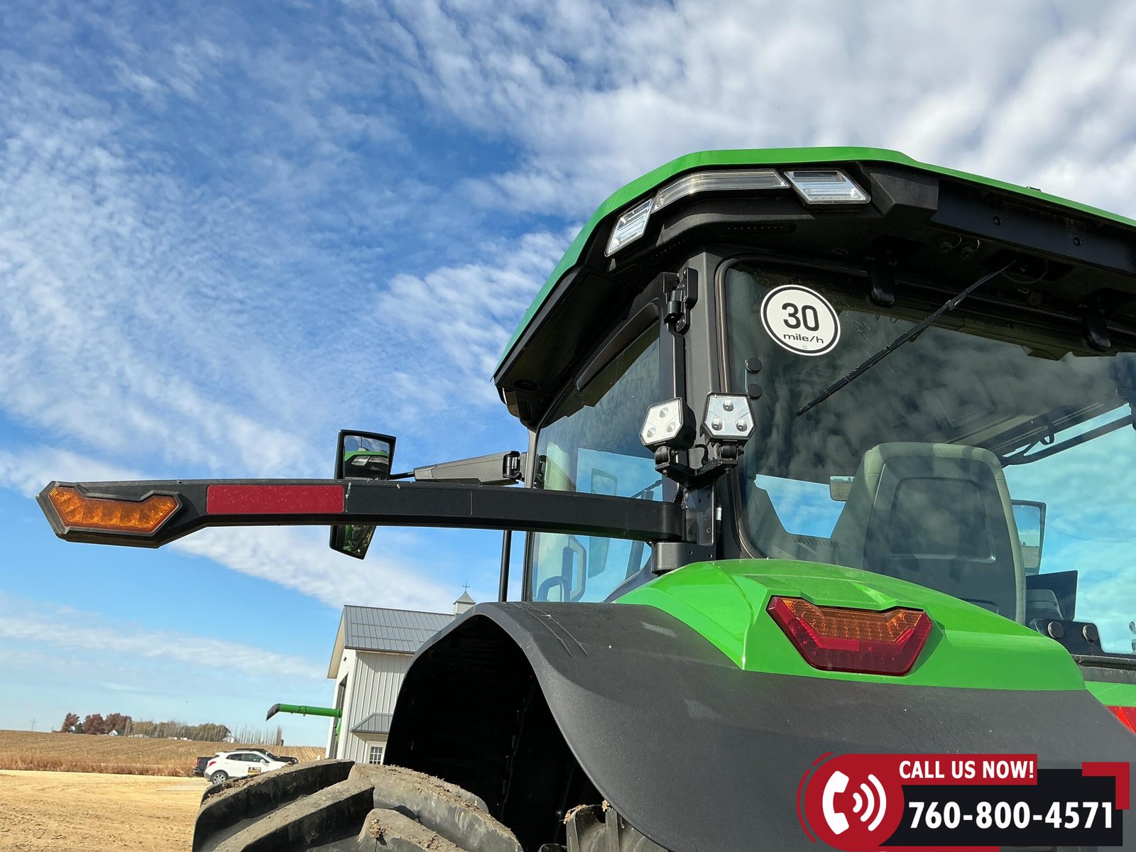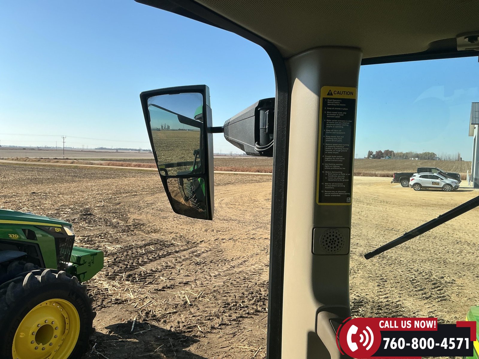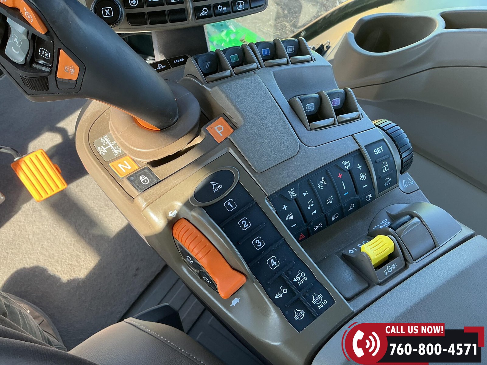 Features include six hydraulic remotes with return ports, large 1000 PTO, quick hitch, rear fender PTO and 3-point hitch controls, and a drawbar with hammer strap and pin. Tractor is equipped with (16) 43 kg (95 lb) front suitcase weights.