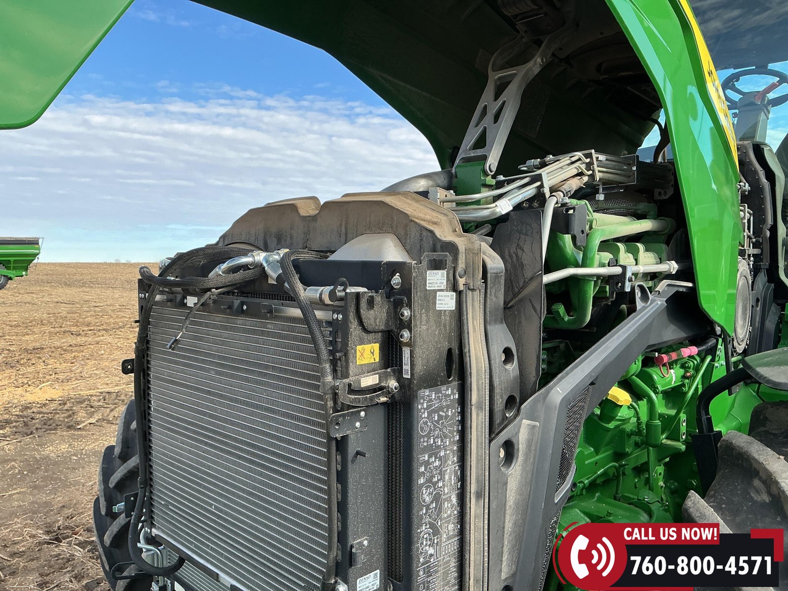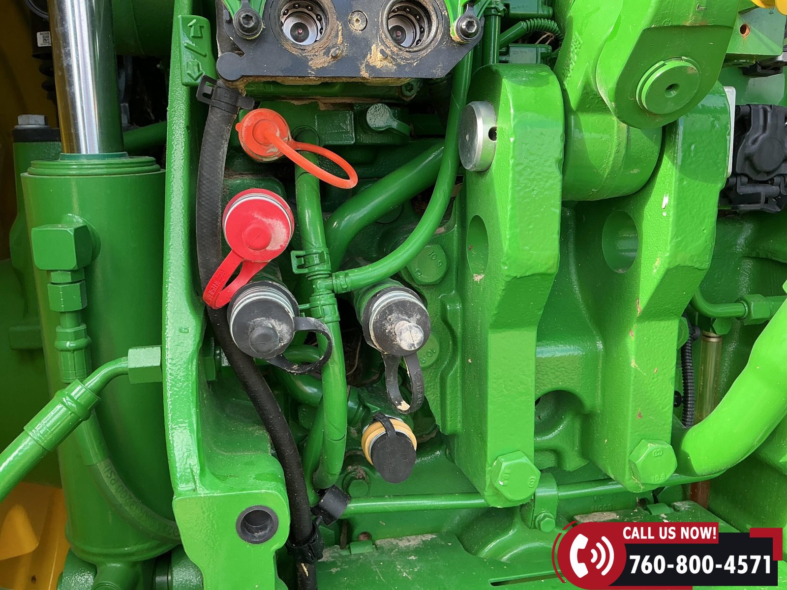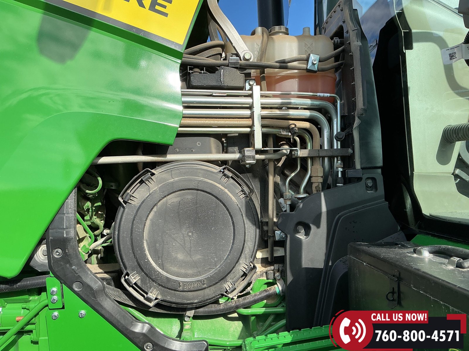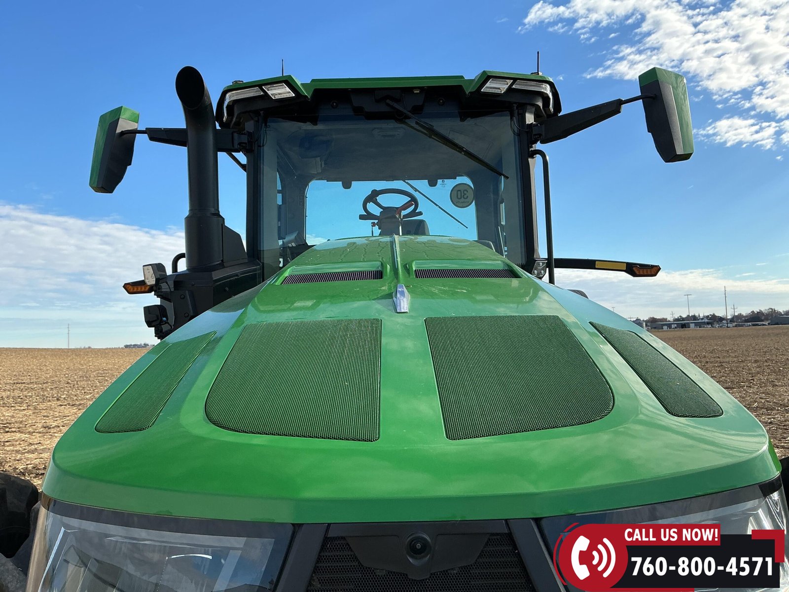 Features include six hydraulic remotes with return ports, large 1000 PTO, quick hitch, rear fender PTO and 3-point hitch controls, and a drawbar with hammer strap and pin. Tractor is equipped with (16) 43 kg (95 lb) front suitcase weights.