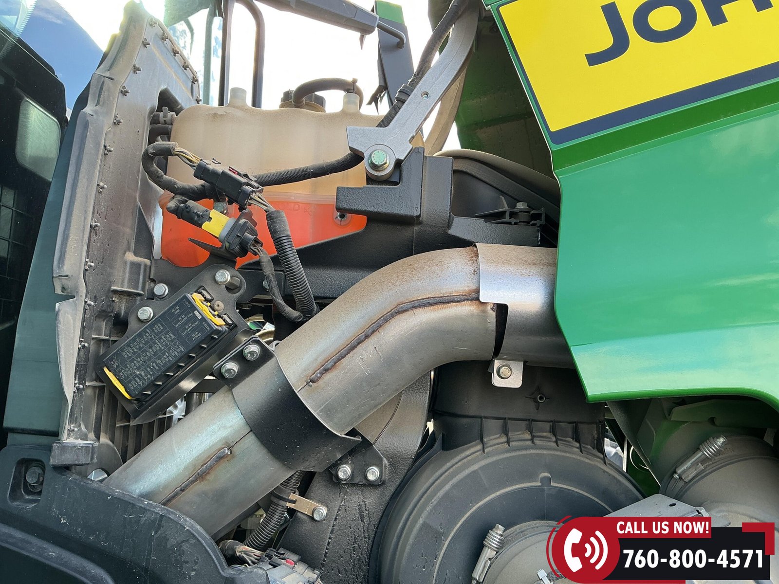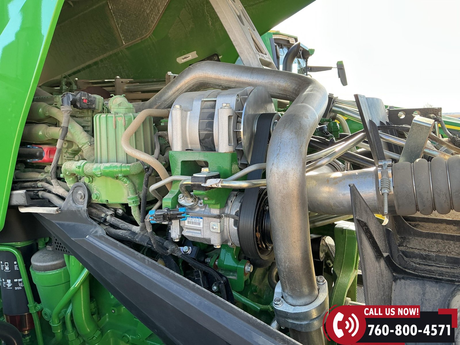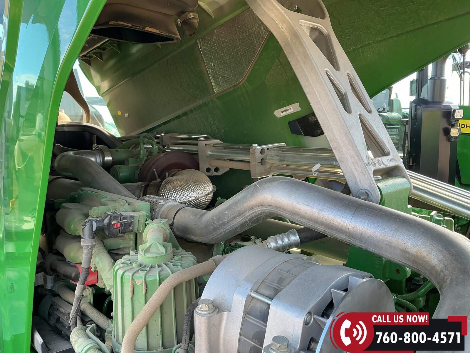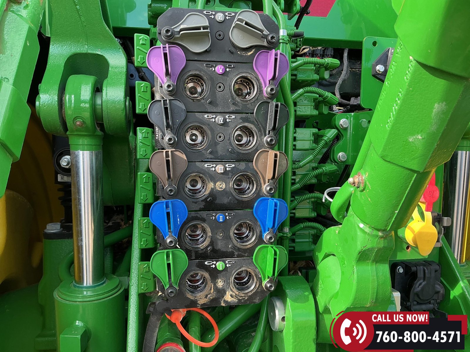 Features include six hydraulic remotes with return ports, large 1000 PTO, quick hitch, rear fender PTO and 3-point hitch controls, and a drawbar with hammer strap and pin. Tractor is equipped with (16) 43 kg (95 lb) front suitcase weights.